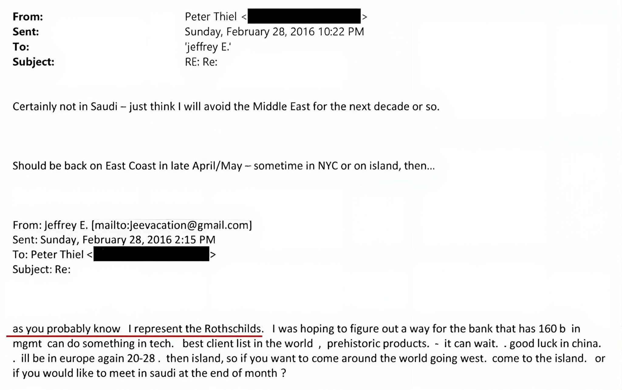 This is why Epstein feels so comfortable inviting Peter Theil to Saudi Arabia, saying “I represent the Rothschilds, would you like to meet in Saudi?” and why he received a piece of the Ka’aba’s cloth as a gift from an Emirati businesswoman: there is no greater symbol for the rampant bastardization of Islam than this. They will literally sell Islam and its holiest sites for their lust, money and access.